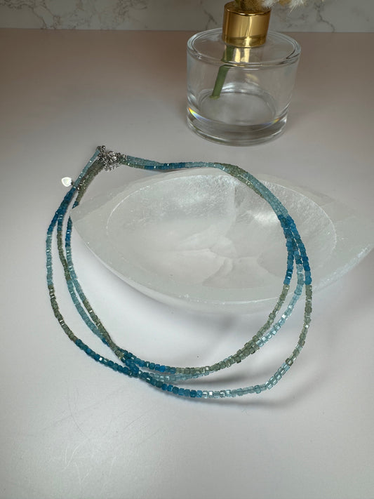Faceted Blue Apatite and Green Apatite necklace 3mm