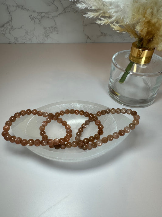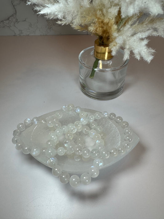 Moonstone with Blue Flash Stretch Bracelet 8mm