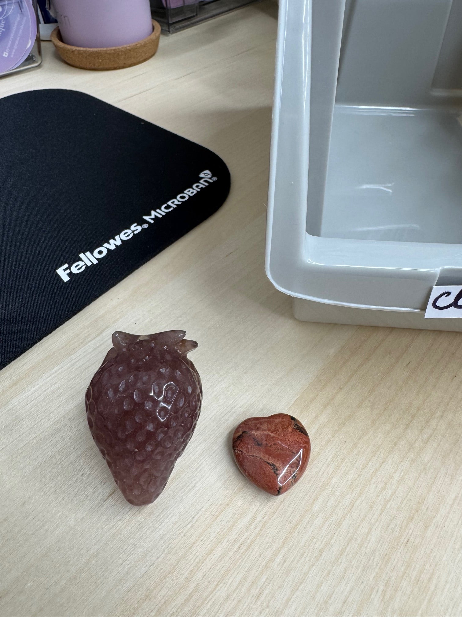 live claim 2/1/25: strawberry quartz strawberry 18, red jasper heart 0
