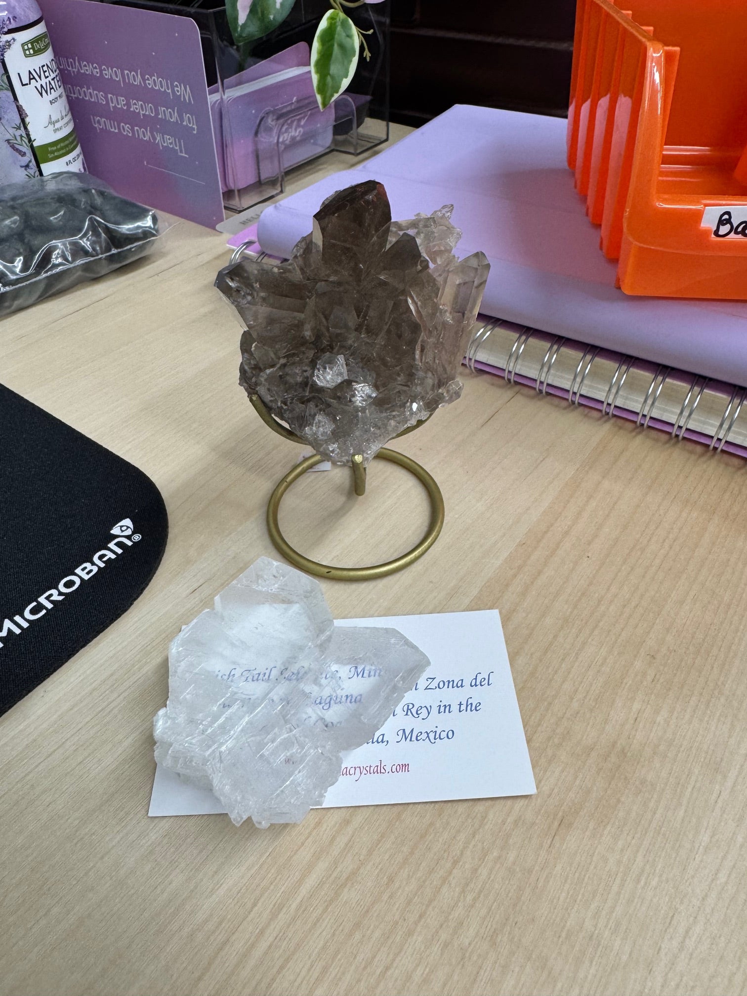 live claims 3/8/25: smoky quartz cluster 25, fish tail selenite 15= 40