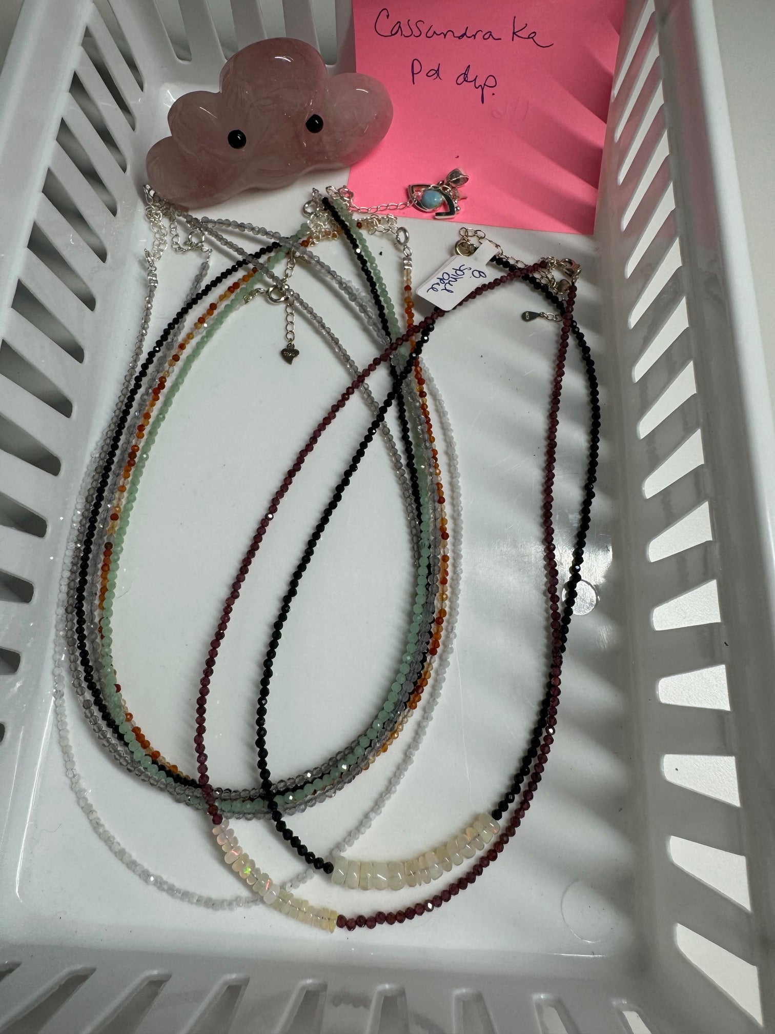 live claims 11/9/24: garnet & opal 18, black spinel & opal 18, carnelian, black spinel, moonstone bundle 40.00, green avent, smoky, & lab bundle 40 = 116 less deposit 25= 91.00