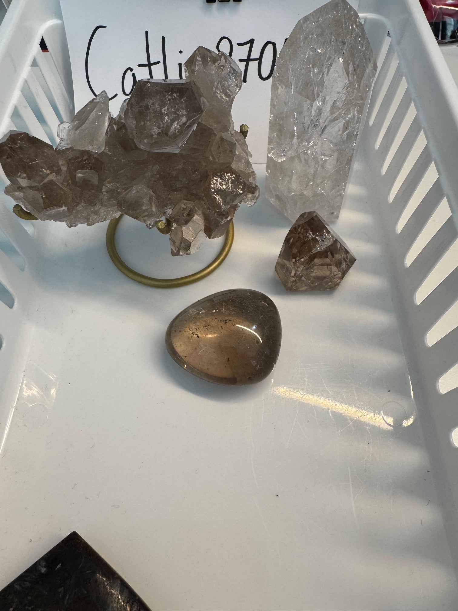 live claims 1/18/25: smoky cluster 31, smoky crackle tower 9, clear quartz crackle tower 20, rutile smoky palm 8= 68