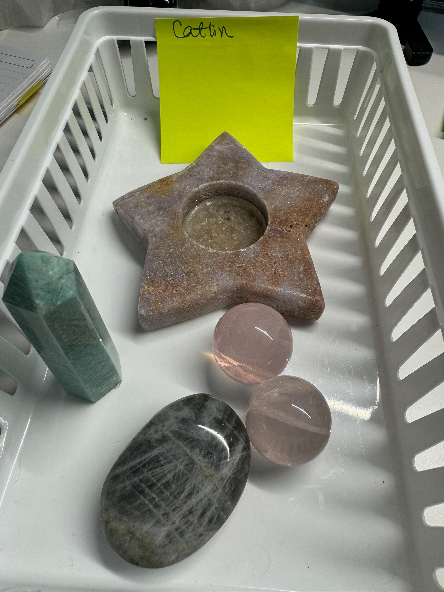 live sale claims 10/5/24: Pink Amethyst Star candle holder: 17.00, 2 small rose quartz spheres 20.00=37.00