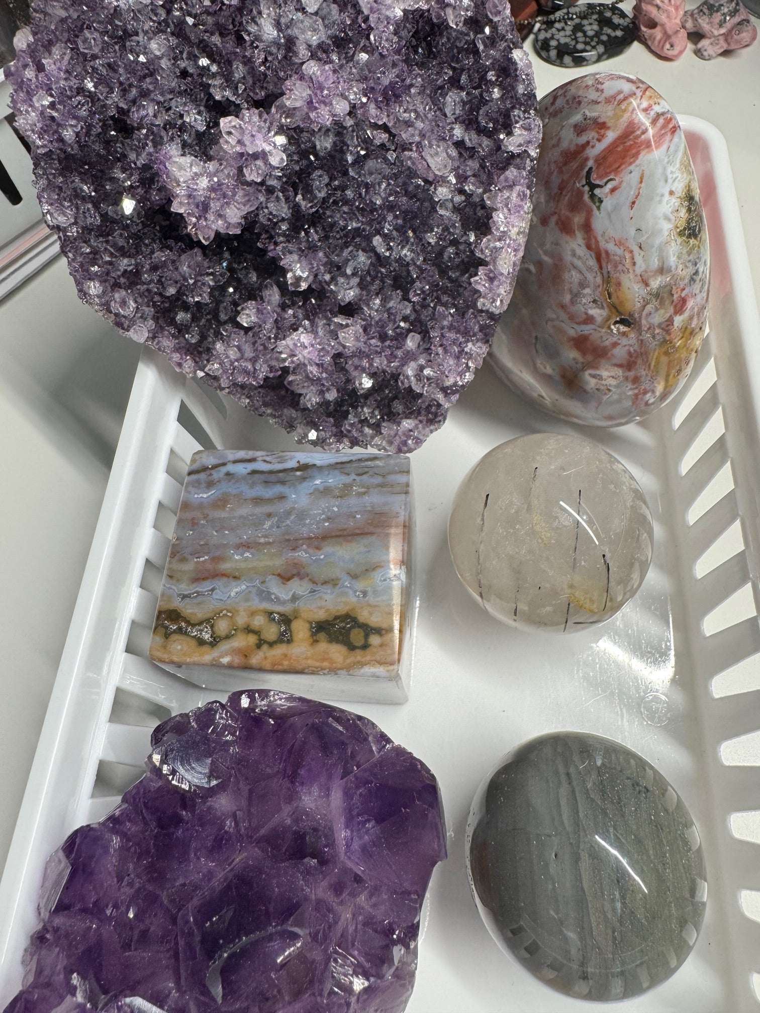 live claims 12/28/24: oj ff 35, amethyst 75, oj cube 38, amethyst cupcake 48, tourmalinated quartz 40, polychrome sphere 20= 256 less 25% discount 192