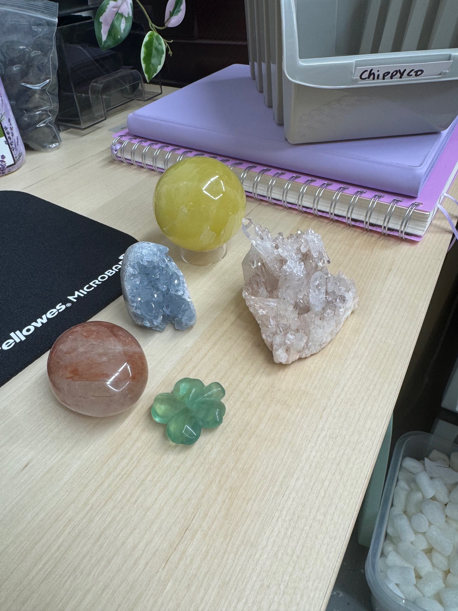 live claims 3/15/25: pink lemurian cluster 145, lemon calcite 34, celestite ff 13, fire quartz palm 7, fluorite clover 6= 205.00