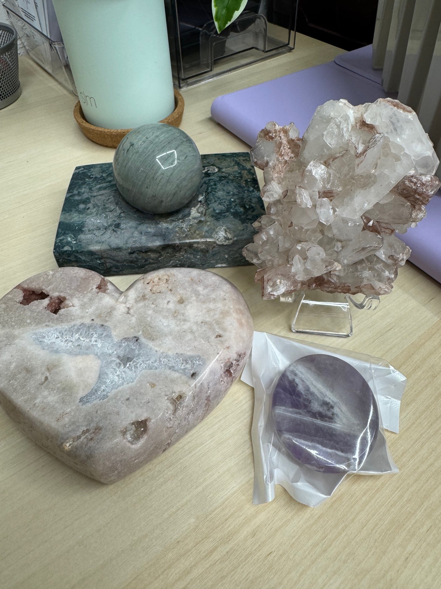 live claims 1/25/25: pink lithium cluster 31, pink amethyst heart 28, amethyst popsocket 10= 69.00