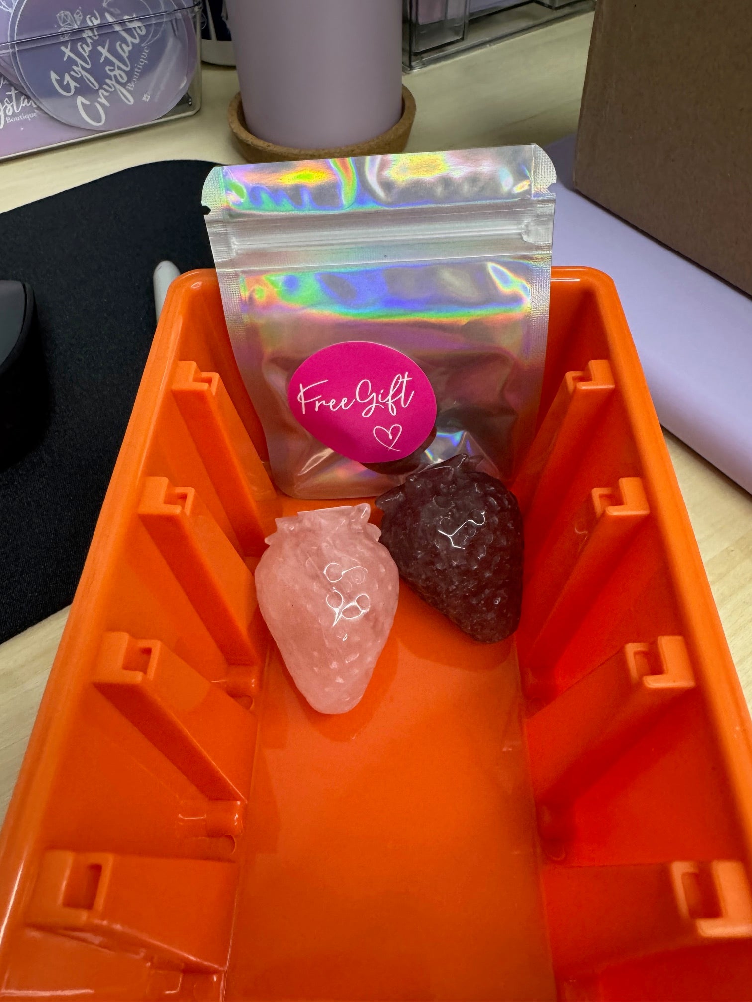 live claim 2/1/25: Rose Quartz tower, strawberry quartz strawberry 18, rose quartz strawberry 20, red jasper heart 0= 108