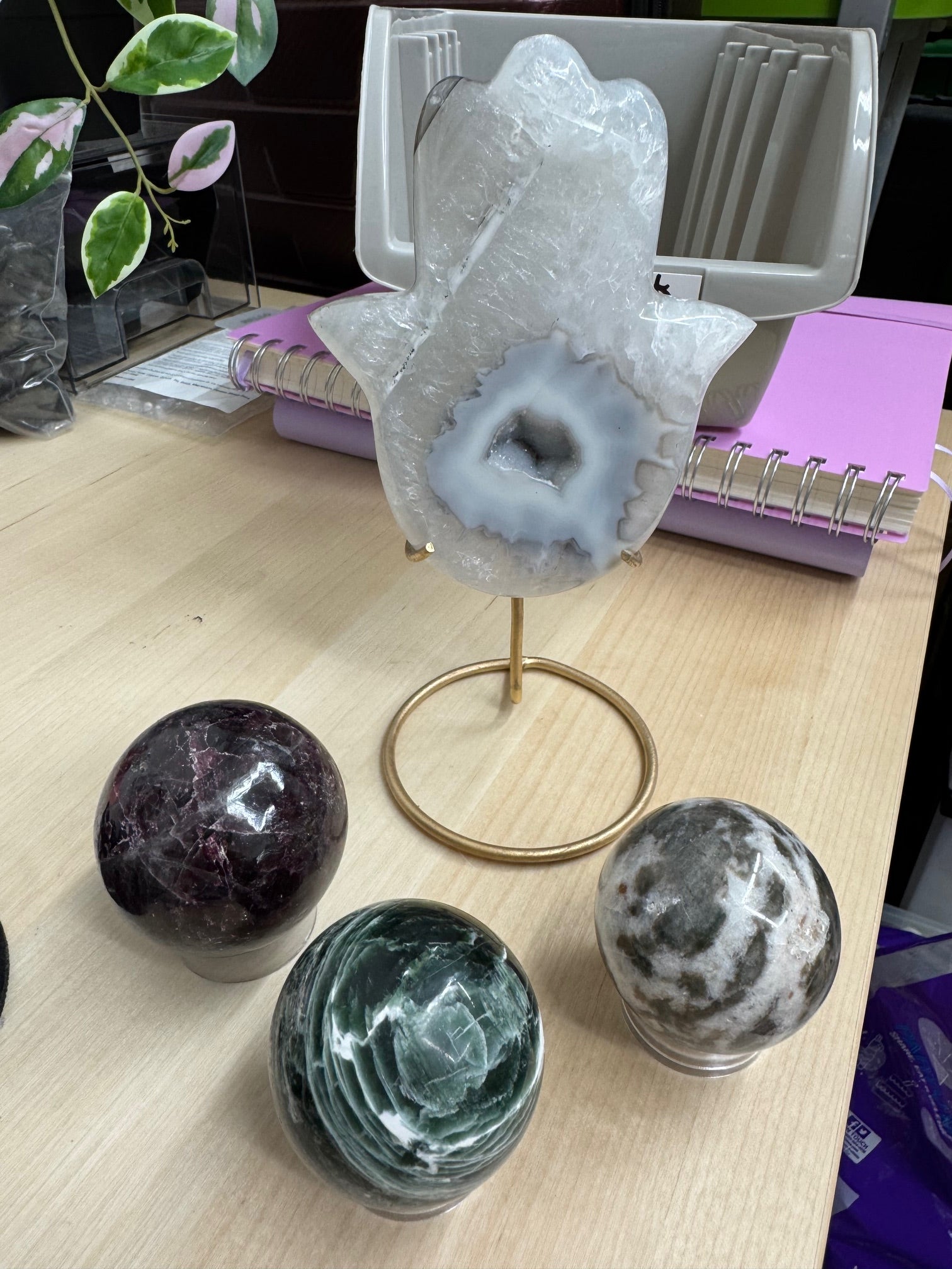 live claims 3/22/25: hamsa agate 70, rhodolite gem garnet sphere 52, green kyanite sphere 37, polarity moonstone sphere 25= 184