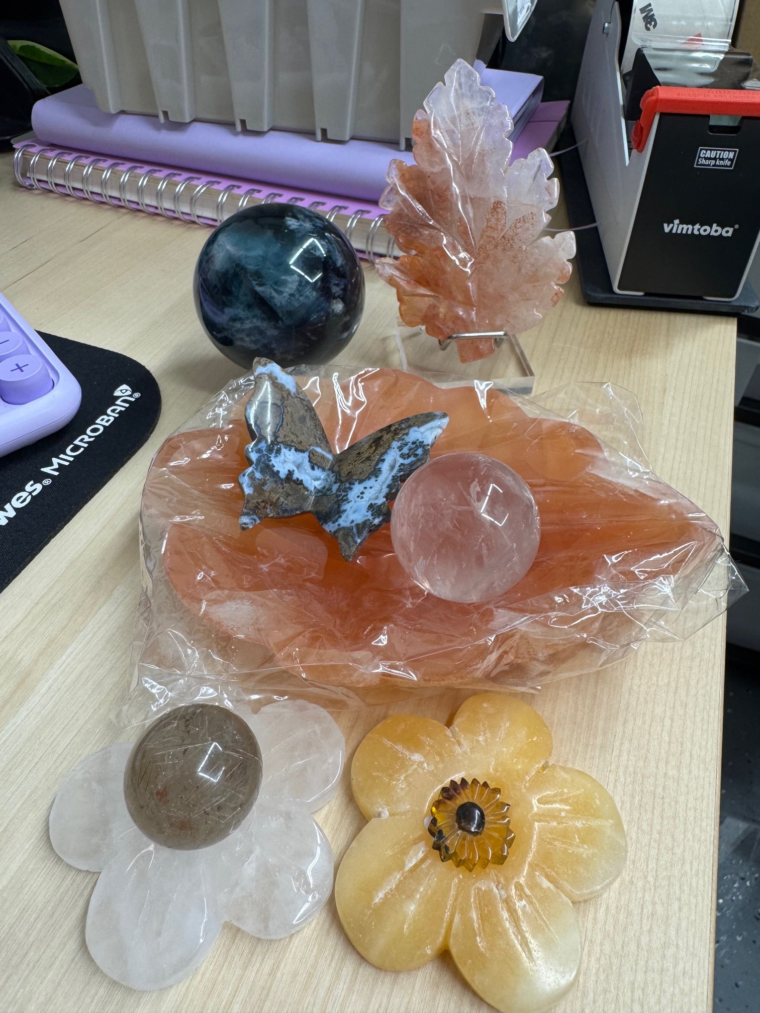 orange selenite leaf bowl 25
