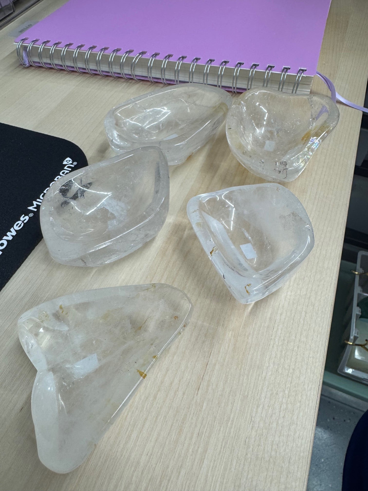 live claims 2/22/25: 5 clear quartz bowls 17, 19, 20, 22, 15= 93