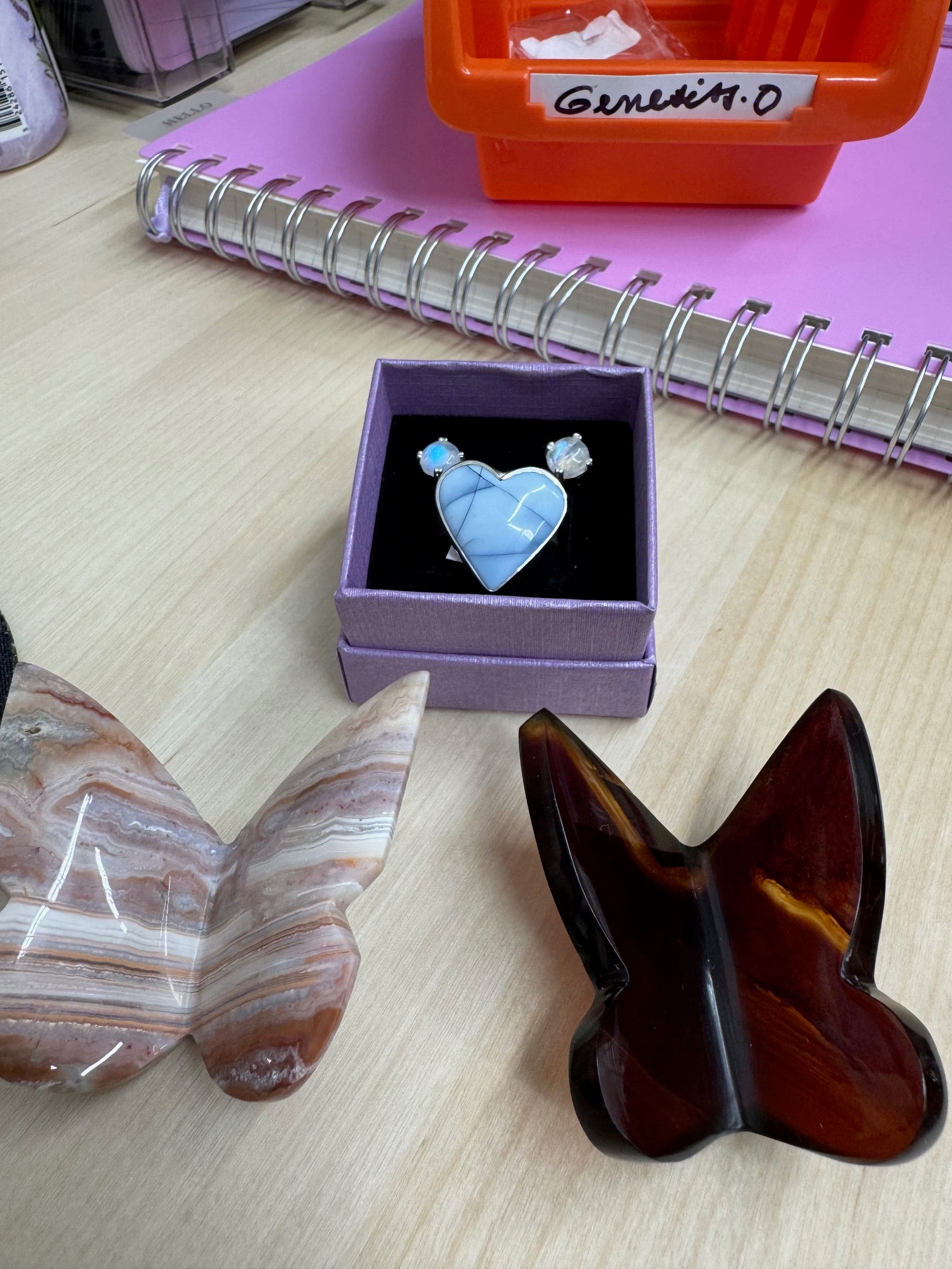 live claims 3/1/25: blue amber butterfly 20, pink crazy lace butterfly 22, moonstone studs 35, blue opal heart ring 52= 129