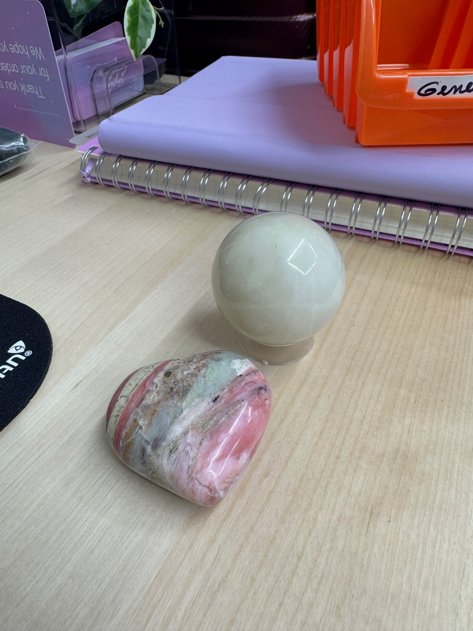 live claim 3/8/25: sage moonstone sphere 43, strawberry opal heart 15= 58