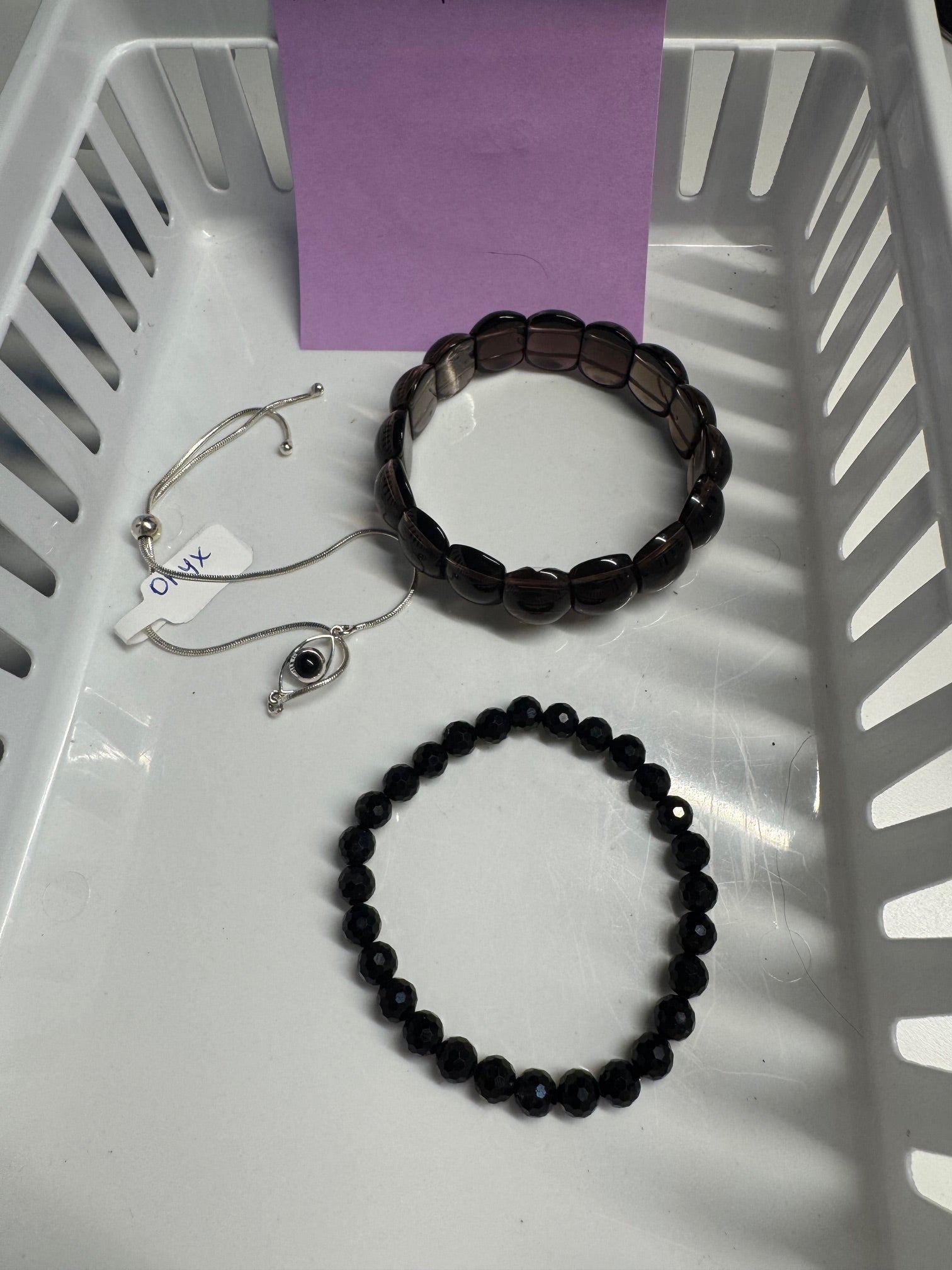 live claims 1/11/25: smoky bangle 25, onyx bracelet 42, black tourmaline bracelet 15= 82