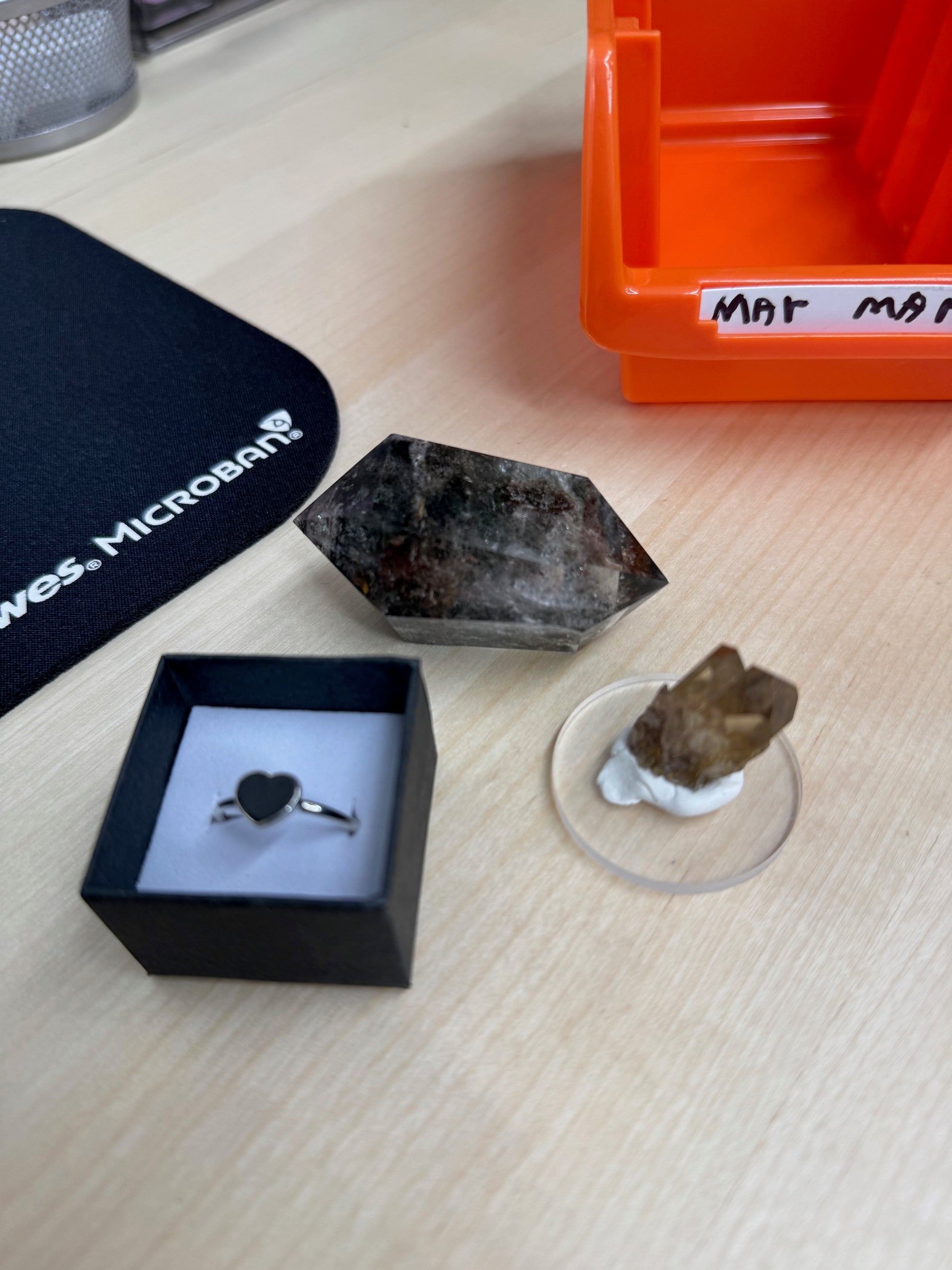 live claims 2/8/25: black tourmaline heart ring 30.00