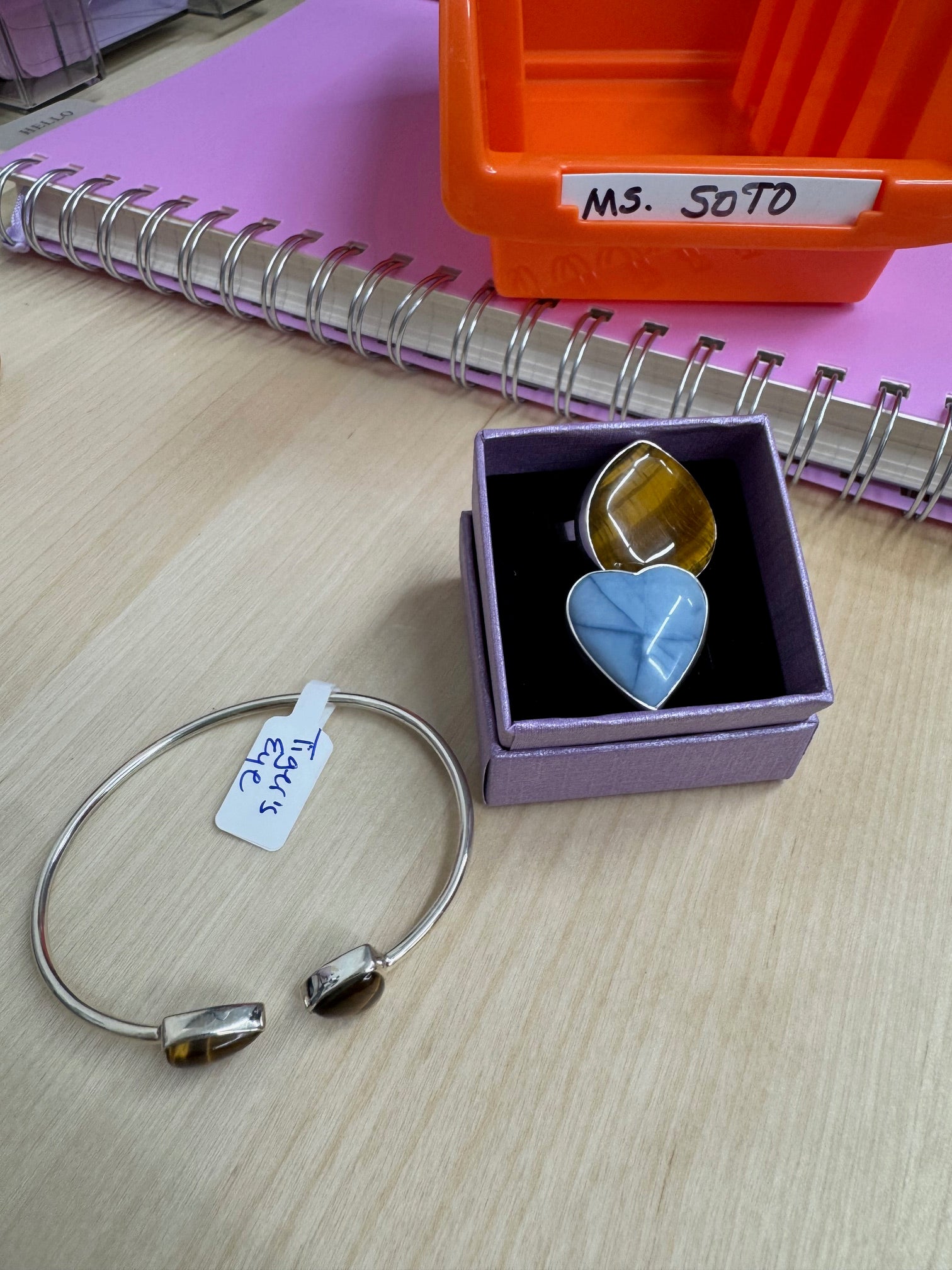 live claims 3/1/25: tiger's eye bangle 68, tiger'e eye ring 40, blue opal ring 52= 160