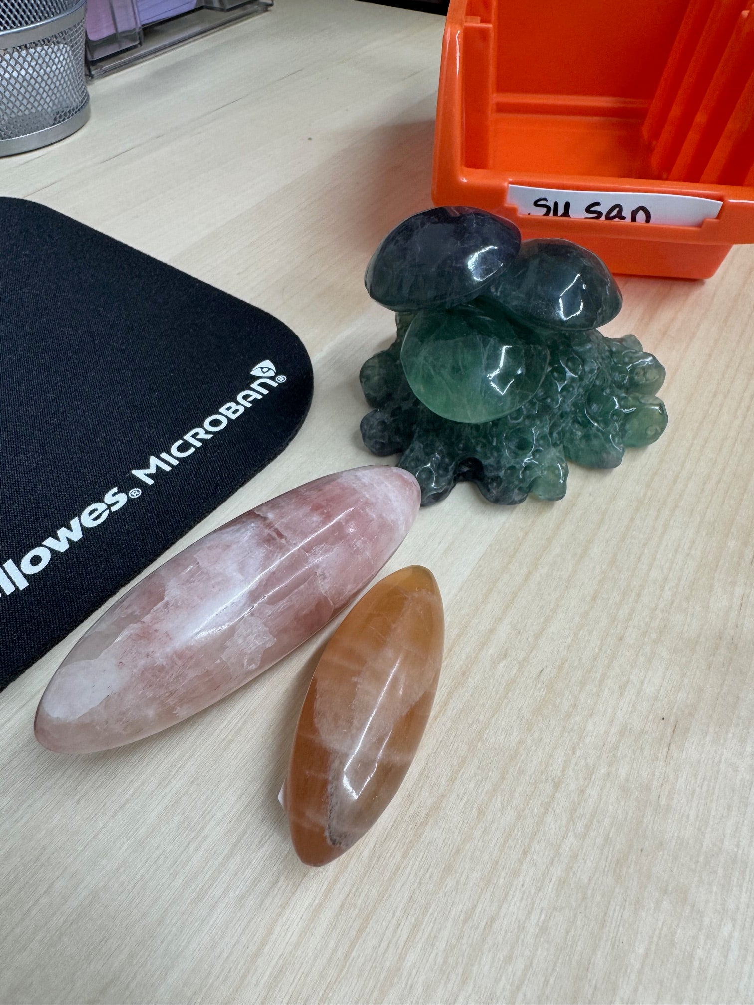 live claims 2/8/25: Rose calcite shiva 12, honey calcite shivas 6, fluorite mushroom 40= 58 less 10% off = 52.20