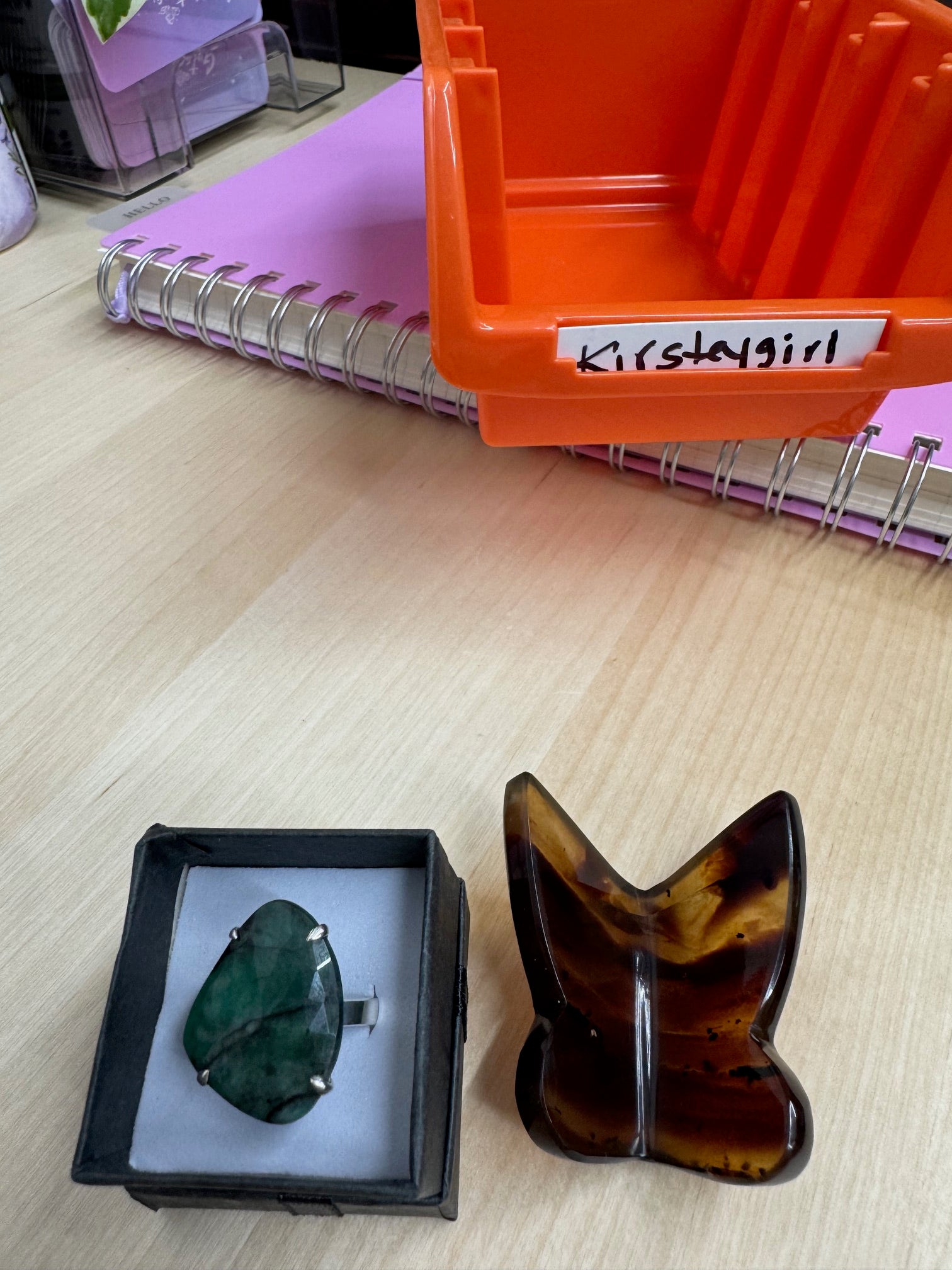 live claims 3/1/25: emerald ring 52, blue amber butterfly 20= 72.00 clear quartz bowl 24= 96