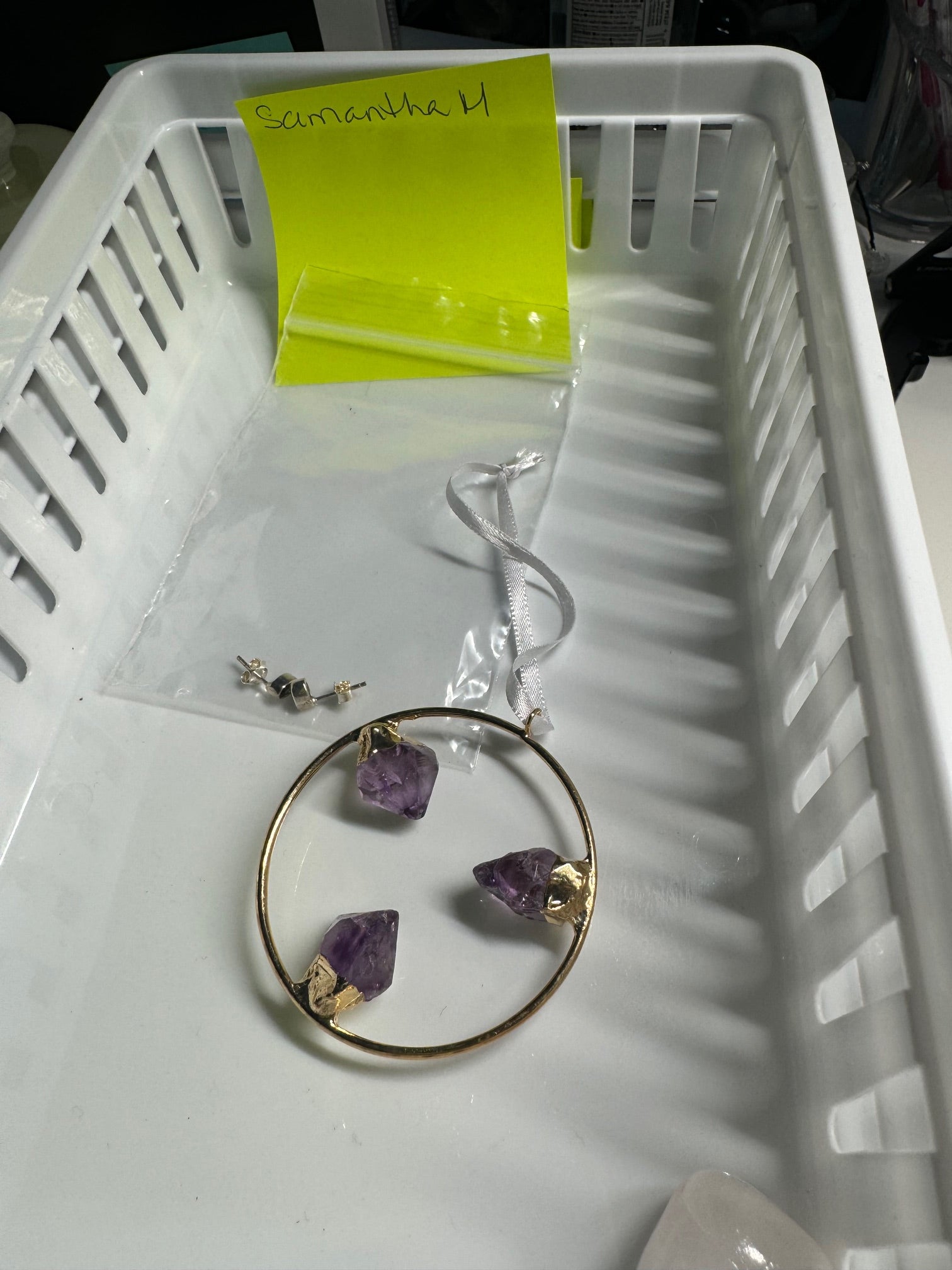 live claims 11/23/24: amethyst gold circle ornament 10, smoky studs 22= 32.00
